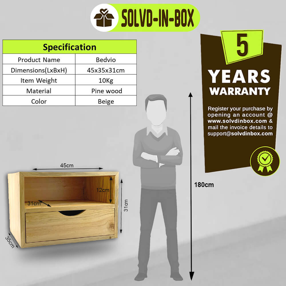 • Bedvio Beside Table is Perfect for Displaying Books, Magazines, or A Decorative piece. Drawer and shelf is smartly aligned over the Furniture.