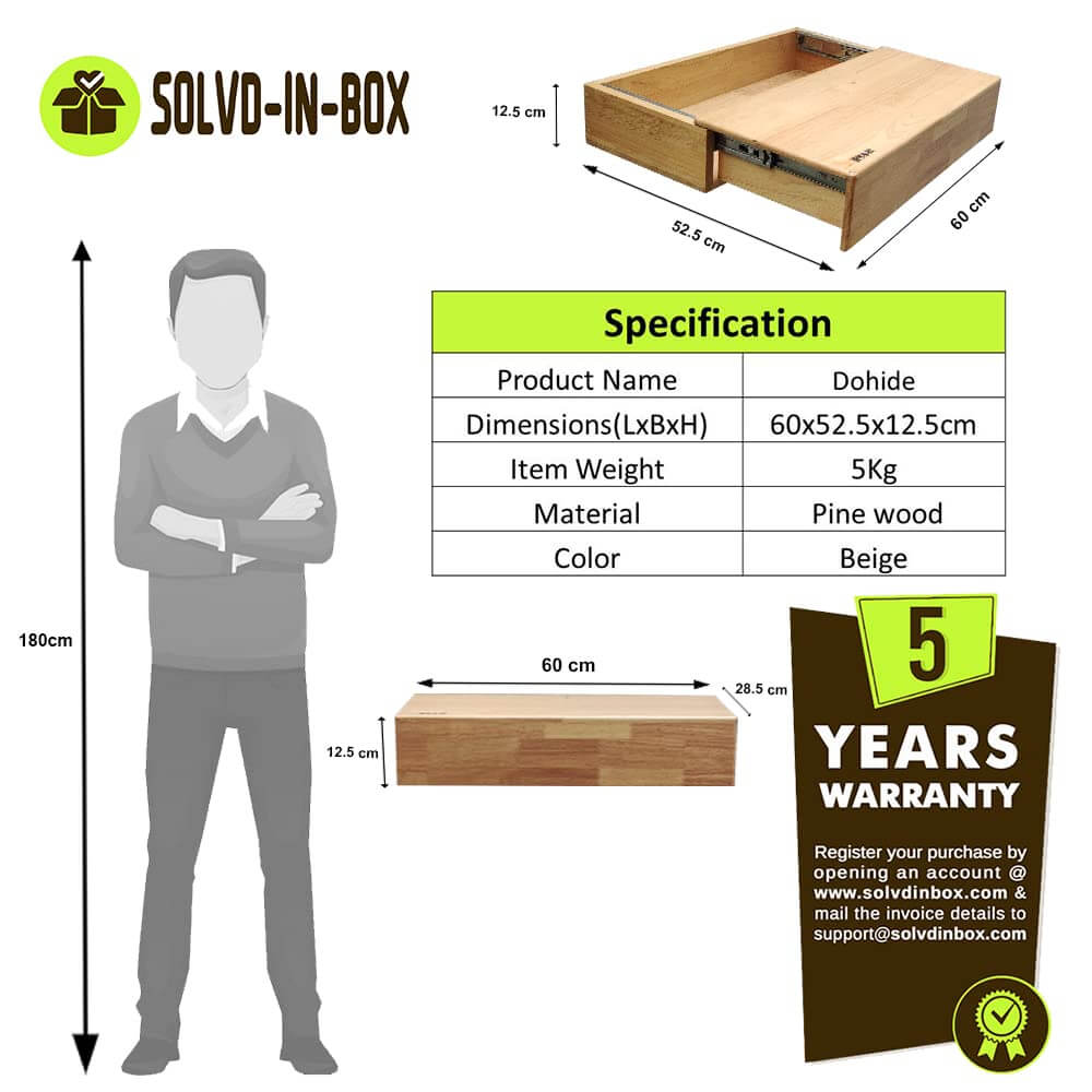 Dohide is a completely functional and beautiful wall shelf on the first glance but only you shall know that its not just a well crafted floating wall shelf but also a concealed pull out drawer with decent storage to keep and secure your valuables.