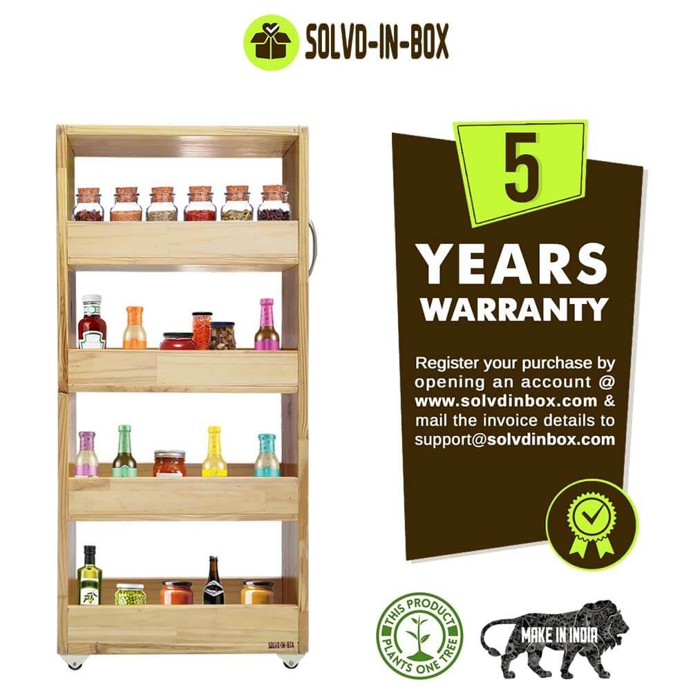 • Package Contents: Pack 1 SOLVD-IN-BOX Trollops Pinewood 4 Tier Storage Organizer Slim Rack with Wheels